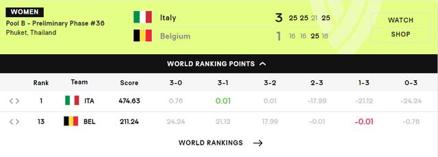 意大利女排是目前的世界第一,比利时女排是世界第13,所以这场比赛意大利女排3-1击败比利时也只增加0.01分而已,这两支球队的硬实力差距很明显,但此役意大利女排强力接应埃格努的战意很浓厚。